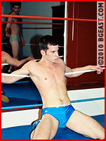 Oh-so-cute mat-boy Todd herein makes his ring debut, wearing a perfect, butt-hugging blue speedo. Having starred in several of BG East's Matmen series, Todd is the perfect victim for up and coming BGE heel Dick the Prick, named not just for his -- piece-- but also for his attitude. At 5' 9", lean and muscled at 155 lbs, he couldn't wait to get his hands on the all American athlete, whose 150 lbs of perfectly proportioned physique is more than enough to enrage Dick.