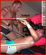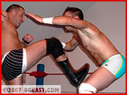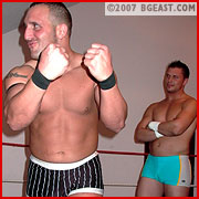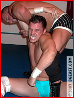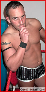 Nik Knox debuted in Ringwars 14, partnering with Shayn Layne in a brutal demolition of baby face team Paul Hudson and Cameron Matthews. Almost stomach turning in its brutality, the innocent young baby faces were all but crippled by the sheer nastiness of their bigger, older and much meaner opponents. Nik had such a good time he was more than happy to come back to the BGEast arena. "Fresh meat," he growled, "nothing better. Just make it nice and juicy, Boss!" Of course, that the Lord of all things BGEast has an affinity for other wrestlers with a dark side and a penchant for punishment is no secret. It didn't take long for him to decide on which babyface to feed to, er, schedule against the hungry hunky heel.
