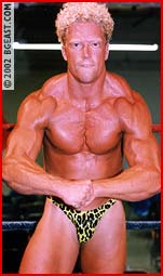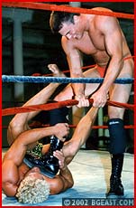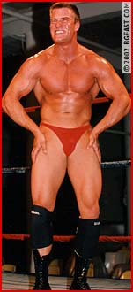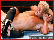 Pete Reynolds, 24, 6'2, 220, is a personal trainer and he poses a serious threat to his 6', 225 pro opponent. Psycho decides not to take any chances and goes for the jugular right from the start. A kick to his opponent's midsection is meant to drop the rookie, but Psycho ends up trapped in a big bearhug. Psycho immediately goes for the tried and true, bashing big Pete in the balls and then pounding and stretching him, then whips him into a Boston crab. Superhunk Pete manages to power out, but Psycho just keeps coming back with devastating holds, even strangling his less experienced opponent. Pete tries to come back hoping to catch Psycho off guard. But Psycho just loves revenge, and the more Pete tries, the harder Psycho hits back. He loves a long and nasty finish and Pete gets put through wringer with a sleeper, camel clutch, clothesline, and full nelson/body scissors that has Pete crying out his submission. A final submission and sleeper put this "golden boy" out for good.
