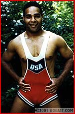 Two of BG East's premiere babyfaces square-off, and while they never get out and out nasty with each other, they do get very rough indeed. Both guys first appear in warm-up gear and perlorm some neat stretching exercises. Matt showcases his gymnastic skills -especially one extraordinarily beautiful bridge. They strip down to brief wrestling trunks, Jason to shiny, tight pale green, and Matt to a form-fitting red and white striped bikini. This is a great action-packed bout from two long-time BG stars. Just a few of the wide ranges of holds employed: bear hug, a variety of scissors, arm stretchers, major leg splits, a boston crab, body slams, full nelsons, lace-squats, jacknife pins, a bow and arrow, surfboards a hot double head scissors, a double arm bar suplexes and more. Great action and lots of suspense in a two out of three taller that will keep you guessing as to who will come out on top right up to the final submission.