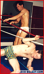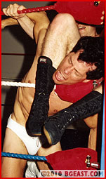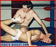 TNT gets challenges from a variety of chumps who either don't realize what a torture machine this lean wrestler really is, or who do realize it and want to be stretched and forced to give up! Stepping out of a white robe, Ron reveals a sexy white bikini, white boots and a lean muscled physique. TNT accepted this challenge because this guy looked like someone who wanted a beating. Mouthing off and underestimating his skilled opponent, TNT gets tossed out of the ring! This guy has talent and wants to show up the lightweight superstar! Crotch shots give TNT a comeback and a chance to stretch Ron's leg showing off a beautiful basket! A leg-spread has both crotches on display but it's TNT who's forced to submit. True to form, tough Ron gets put through TNT's encyclopedia of submissions, each unique and very painful. But Ron's abstretch variation is the hottest we've seen! We'll leave it to the viewer to determine if these two wrestlers got what they expected from this match! We sure got what we wanted!