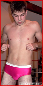 Conor McGlynn is a sexy youngster with big dreams and butterflies in his stomach as he warms up, waiting for his first opponent to show up. He?s done his own homework; reviewing Braden?s matches, studying his strengths and weaknesses, and he's certain that despite giving up size and strength to his foe, he can give the musclestud a battle. And when Braden struts into the ring, his mighty muscles on full display in those skimpy trunks, his own anger comes out in the contemptuous way he shows off his gym-thickened body to Conor. ?What are you doing in MY ring?? he spits out between striking eye-popping poses. Braden has something to prove, all right, and the glint in HIS eye as the bell rings does not bode well for cute Conor getting out of the ring in one piece!