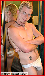 Raven is a sexy, cocky young punk with a nasty attitude who also finds wrestling to be an exercise in sensuality - his first sexual experiences were wrestling around with his friends and cousins when he was a kid, and wrestling and sex are inextricably linked in his wiring. The more you twist him up and beat on him, the harder he fights back and the harder he gets - his BGEast debut against sexy stud Tino Valencia was one of the most sensual matches ever recorded by our cameras. After going through the company portfolio, he requested sexy Jeremy for his follow-up match - and fittingly the match was booked for Las Vegas! When the two met for the first time, that indefinable but oh so palpable chemistry was obvious - all it took was a slight spark to set off that dormant powderkeg - and the sensual kiss the two share before taking it to the mattress started the smoldering!