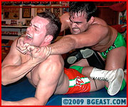 Indy superstar Matt Stryker has left a string of broken bodies in his wake since his BGEast debutâ??which is exactly how he likes it. Stryker has that lethal combination of extraordinary scientific wrestling skill coupled with devastating delivery, which makes him an extremely dangerous opponent. His hunky body and sexy sculpted hairy chest doesn't hurt either! Matt's success in numerous indy feds has left him with nothing left to prove to anyoneâ??other than himself. He came to BGEast knowing his reputation and success preceded him, and placed a target square in the center of his back. After all, what better way for a BGEast wrestler to prove his own mettle than by taking down an indy legend and star who has held any number of title belts? Stryker has also been stung by snide comments from his colleagues at BGEast â??â??he only wrestles mismatches,â?? â??if he didnâ??t cheat he wouldnâ??t win so often,â??"etc. etc. So his match with sexy Irish champ and international star Devil Devitt took on a whole new significance for the muscular studâ??he decided to use this match to showcase his skills and talentsâ??and to make a powerful statement.