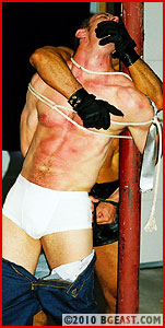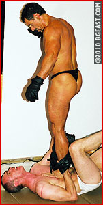 Longtime BGE star the Brooklyn Bodywrecker has taken his skills of punishment and domination to a new level, and he's heard that wrestler Shon Tracy claims he can take almost any amount of pain without submitting. BBW likes nothing better than a challenge! A garage with mats is soon converted into a wrestle and torture dungeon! From the brutal headscissors between the BBW's muscular flexing thighs, to crab & repeated gut busting, it's intense rip wrestling as the cocky ripped Shon gets trashed & tested. BBW's whips and binds his victim with handcuffs, ropes, tape from the full Bodywrecker bag of tricks along with some unusual items found in the garage. Shon takes more punishment than any of the BBW's previous victims. When Shon flexes his glistening, sweaty, battered body, it is a thing of beauty and the BBW's physique is a marvel. Sucking, face squatting and total erotic destruction: a forced jo and then BBW unloads! HOT!