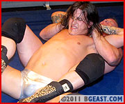 Lucky Loko screams in agony as Big Dev Michaels pours on the bearhug pressure and punishment