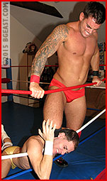 Sometimes a mere technical win is enough for a wrestler. Any kind of win, he reasons, is a win, anyway you slice it. Sometimes he wants a little more, though, a decisive pin fall or a humiliating submission. However, the wrestlers in BG East's new series won't settle for anything less than knocking their opponents clean the fuck out! The ultimate satisfaction in combat sport is being the only player capable of walking away on his own two feet, leaving the opponent a near-lifeless heap, having utterly surrendered in the center of the ring.