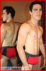No one will dispute that Stone Whitman is an amazing physical specimen. His sculpted abs and pecs would put Greek statues to shame! And that body is on full display as he works out before his first BG East Submissions Match. In his debut match for BG East, Stone threw his phenomenally sculpted body against the larger Donnie Drake, giving and taking a beating. Still trying to shake off the rookie label, Stone is going up against someone more his size. So he should have the upper hand, right? That might have been the case if his opponent was anyone other than the redoubtable Jonny Firestorm!