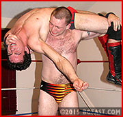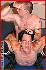 Stone Whitman's ripped physique is in high relief as he works a chinlock on Jonny Firestorm