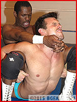 Chet Chastain chuckles when he sees his on-again, off-again tag team partner Brice Moore arrive at ringside. "Look who finally decided to show up!" Chet smirks. Chet and Brice have had a long standing love/hate relationship, with a heavy dose of "hate" lately souring the partnership. It's tough to squeeze two egos this massive into just one magnificently muscled, sensationally sexy tag team. Sure, they are a devastating combination when wrestling out of the same corner, but then the intramural fight inevitably breaks out as they argue over which one of them the fans are cheering for loudest.