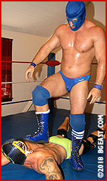 The sweat-soaked Blue revels in his total destruction of the ripped, trampled pretty boy.