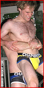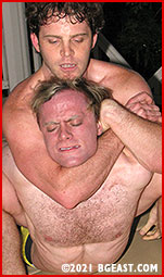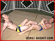 Steam starts to rise from Kenny's ears as he snaps back. "You think it's because I lost my head, when it was you who played a pussy scene, tapping out and giving up right before I could have actually done something to turn it around!" The aggressive body language is all it takes to ignite the dry tinder of this grudge match as the two, blond pretty boys spontaneously attack one another. "You're mom ain't here to save you this time," Kenny taunts, "but you can go back and cry to her like you always do!"