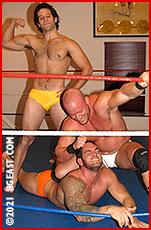 Chace's impeccably muscled body is bullied around the ring and smothered by the Brute