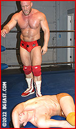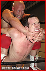 Everyone loves an underdog story: the overmatched competitor who, through a combination of heart, desire, determination and skill, somehow manages to overpower and defeat an opponent they shouldn't have a chance of beating in a million years. Kirk Donahue has become an underdog of sorts since his arrival at BGEast. With his boyish face, lean muscular fan-fave body, and crazy pro wrestling skills, it's hard to root against him when he laces up his boots and climbs into the ring. Later multiple-personality heel-turns aside, he's often been overmatched. But Donahue gives his every battle his everything. Now the Boss has sent him the biggest challenge.