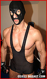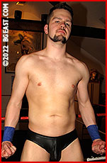 Kayden Keller, the BGE Heel of the Year winner for five consecutive years, shouldn't be shaken by much at this point in his career, but even he finds himself stunned for a quick second as he enters the Arena. Already outside the ring, he finds Sir Noir, a mysterious and imposing French import made of 90 kilos of proportioned, mature muscle. Using his towering height to effortlessly enter the ring, Sir Noir proceeds to stand in the center of the ring and give Kayden a look at the massive peaks he will have to climb to survive the night. Without uttering a single word, Noir lets his opponent know he is ready for action by pulling up the straps of his menacing yet incredibly sexy all-black see-through gear.