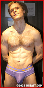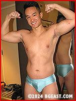 Gale may have wrestled in high school, but Rocky is the experienced hand at impromptu hotel wrestling. BG East's multiple award winner for Best Abs, Rocky is hungry and aggressive as he mounts his prey and brings a whole new meaning to "gym crush" as he scissors Gale's midsection. He's all over the squirming, sweaty muscle boy, sliding to Gale's back and locking him into a shoulder wrenching full nelson. "What would Coach tell you to do, to get out of this one," Rocky taunts, obviously delighted to have the stunned hunk at his mercy.