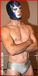Still savoring his first win, Musculo returns in his skin-tight silver bikini, pumped to take on the next challenge. Emboldened by the mystery of his mask, and his success against an inspired Sunny DeLeon, Musculo proclaimed his readiness to continue the luchador legacy. But The Boss was not completely sure about it. BG East welcomes and celebrates the legacy of masked wrestlers, but it's a different thing to put on a mask to wipe an unimpressive track record and hit 'restart' on your reputation. So the compromise is simple, any wrestler who wishes to use a mask can do so, as long as they are willing to stand the humiliation of losing it. That's why The Boss called on a tried-and-true heel who could take new masked man to the limit. Brutal Brendan Byers answered the call. A man who also knows a thing or two about masks (Masked Mayhem 13, for those who missed it) and who is always ready to assert his physical superiority with his trademark erotic charge. The instructions to Brendan were simple: "If Musculo wins, he keeps his mask. If Musculo loses, you can do whatever you want..."