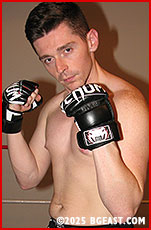 Tough Seon Cruz has tried every fight style known, and excelled at most of them. Since his boxing debut in the previous Gloved Gladiators, he's upped his game. As ever with his serious fetish for fight gear, Seon sports MMA gloves, knee pads, shiny shorts and grappling shoes with his close haircut. His sculpted abs and lean muscle are ready for whatever might face him in this hybrid arena.