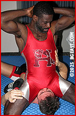 It was a forgone conclusion where this was all headed, with both powerful wrestlers intoxicated on wrestling-fueled desire to possess each other's bodies. The only question is which of them has the tenacity and self-restraint, not to mention the wrestling skills, to come out on top, in every sense of the term. Neither of these hunks can be called the "loser," based on the abundant evidence that they're both thrilled with how the battle plays out. But only one of them climbs on top and makes his opponent beg for mercy and call him by name.