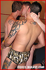 Ash nearly salivates and surveys his obedient boys engaged in a boner-inducing liplock