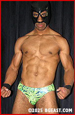 Stripping himself of all but his mask, Power Muscle plants his sweaty muscled perfection all over his foe's face