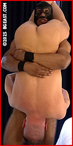 Power Muscle looks to bury his nude challenger in the mat headfirst with a piledriver