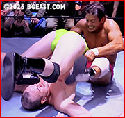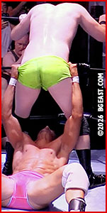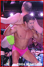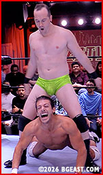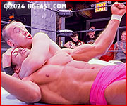 The action spills out of the ring, as Kirk's nefarious brutality crashes again and again into Z-Man's impenetrable tenacity. Every kick out and stubborn refusal by Z-Man to submit dials the fury and brutality hotter. The final 3-count nearly brings the house down, with roaring fans knowing that they're watching history in the making. Whether you're team Kirk or team Z-Man, you can count on enjoying what BG East does best, namely top quality wrestling, outrageous egos, gorgeous bodies, and high stakes wrestling drama that fans can't get enough of!