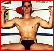 Todd and Chip have a lot in common: pierced nipples, lithe muscled bods, cuteboy looks. But Chip's mouthy & mean, and loves to grab his opponent's balls, as he repeatedly does in this barefoot punkbattle packed with painful scissors, crotchripping stretches, nipple pinching, choke holds. Chip is clearly aroused in his bulging squarecuts as he takes advantage of Todd. Fierce, rewarding and very arousing. Hot!