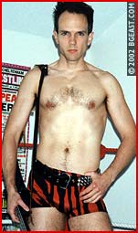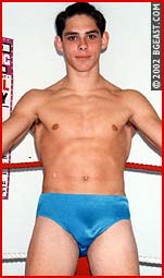 Cute young Cody doesn't even get his shirt off before he's bashed and clotheslined. Cody fights back, but Vicious is even more nasty and aroused. These two tall, lean fighters exchange holds: the Kid crabs, tortures and stomps the young guy's back and legs; Cody applies long figure-4 body and headscissors. Vicious' revenge: multiple neckbreakers, unique rookie-wrecking backbreakers over the knee, sharpshooters, and more. All show off Cody's nice pouch, highlighted in a sheer unlined pale blue bikini. A hairpulling, humiliating multiple submission job boy-bash.