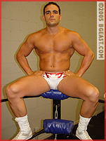 The newbie in the perfect speedo warms up as if he expected an actual wrestling match! Nope, sorry babyface, Tony V is now a man on a mission. He's made his mark on the BGE mats and he wants his ring debut to be a knock-out. And what better way to make his mark than with a smaller, inexperienced rookie boy. Tony tells Lee he's 'dead' as he stomps into the ring. He doesn't mince words and neither will we: this is a total, obliterating squash, plain and simple and hot. Without the courtesy of a handshake or misleading lock-up, Tony V launches into the Asian's demise with a stunning kick to the gut. Lee's face is planted into the mat with a violent ddt - only to be immediately yanked back up for another deadly head drop. We soon discover the Italian uber-heel likes to deliver his abuse in threes, as he follows this first attack with 3 crushing slams and 3 up-by-the-hair and right-back-down clotheslines. After being put through the gauntlet, Lee screams in pain Tony's trademark guillotine, feebly slapping the big man to attempt escape. Will Lee make a miraculous come-back or is this a one-way spiral to jobber doom?